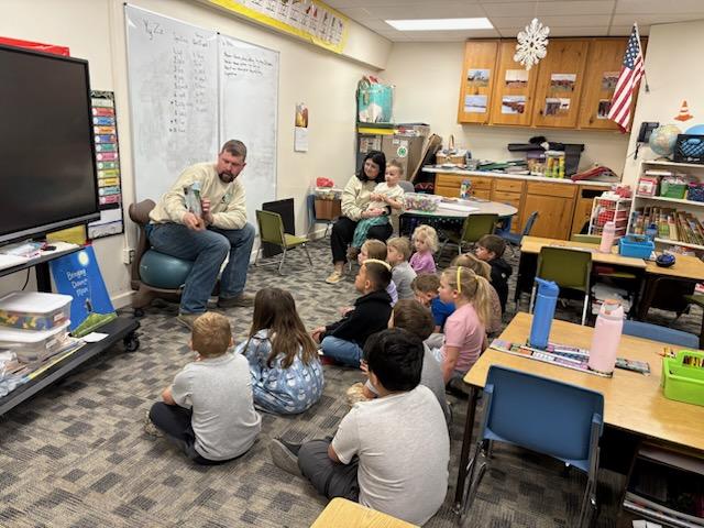 The kindergarten class welcomed Austin and Morgan Weyers to come and talk about agriculture. Austin and Morgan are agriculture pen pals with the kindergartners.