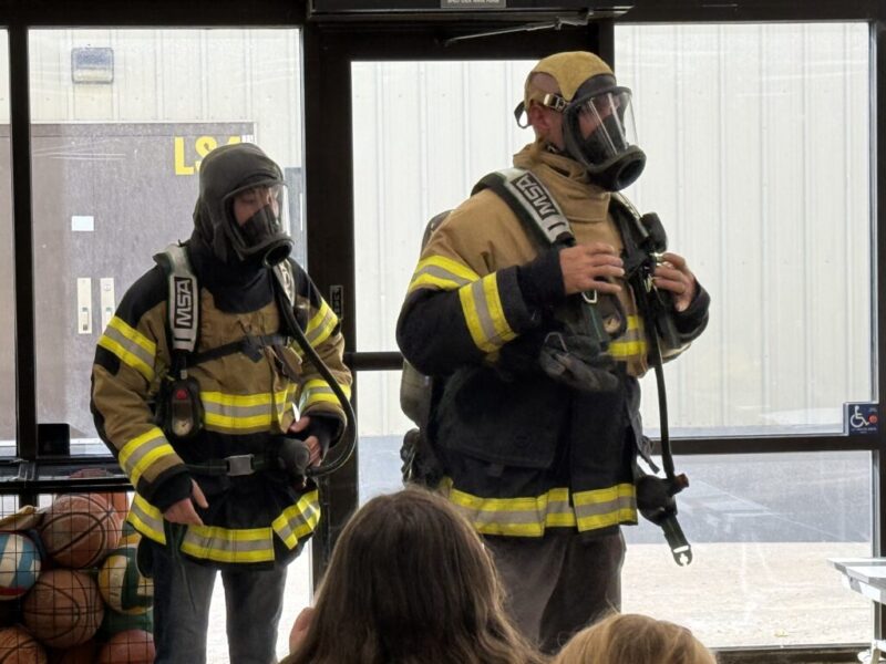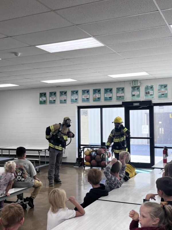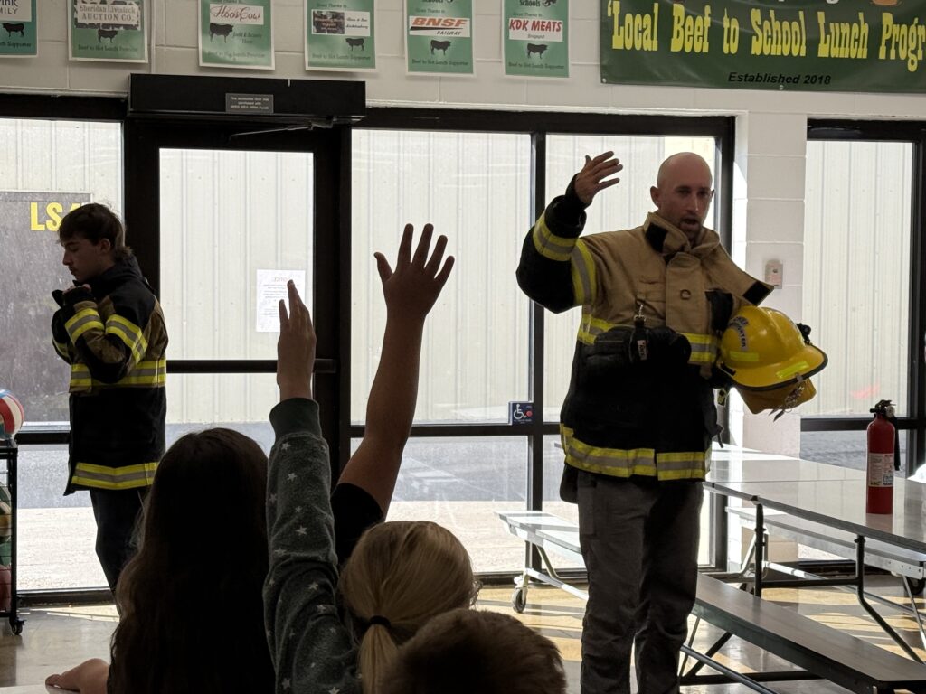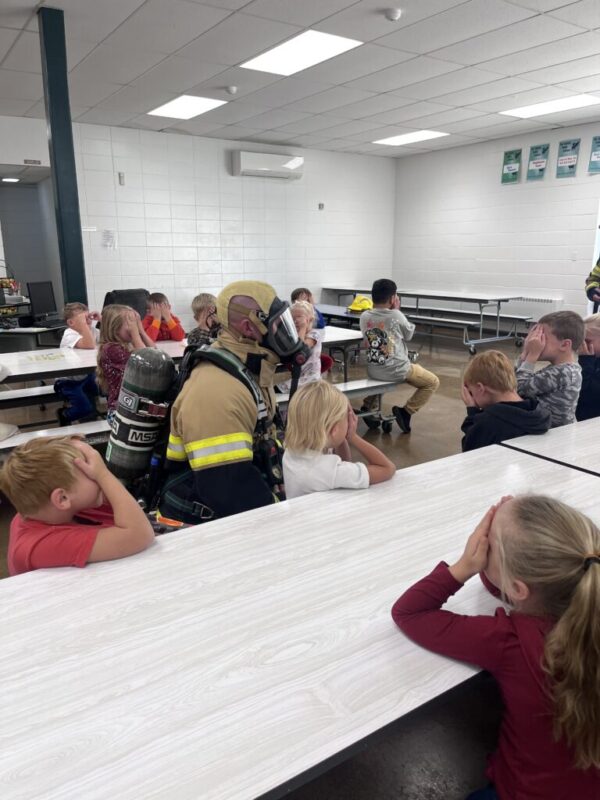This week is Fire Prevention Week. Local Hay Springs Volunteer Firefighters Cole Wyatt and Noah Kelly presented to our elementary students. K-2 students learned about having a fire evacuation plan at home including a meeting spot as well as what to expect if a firefighter had to enter their home.