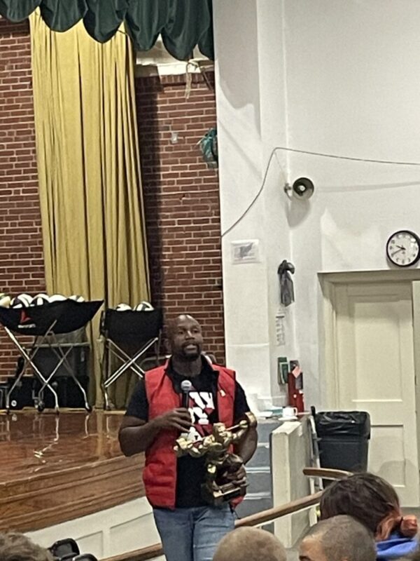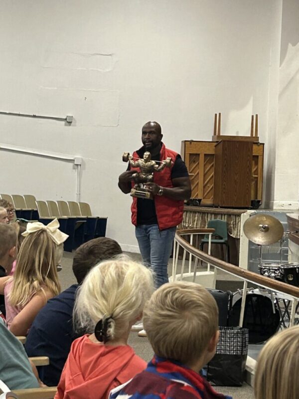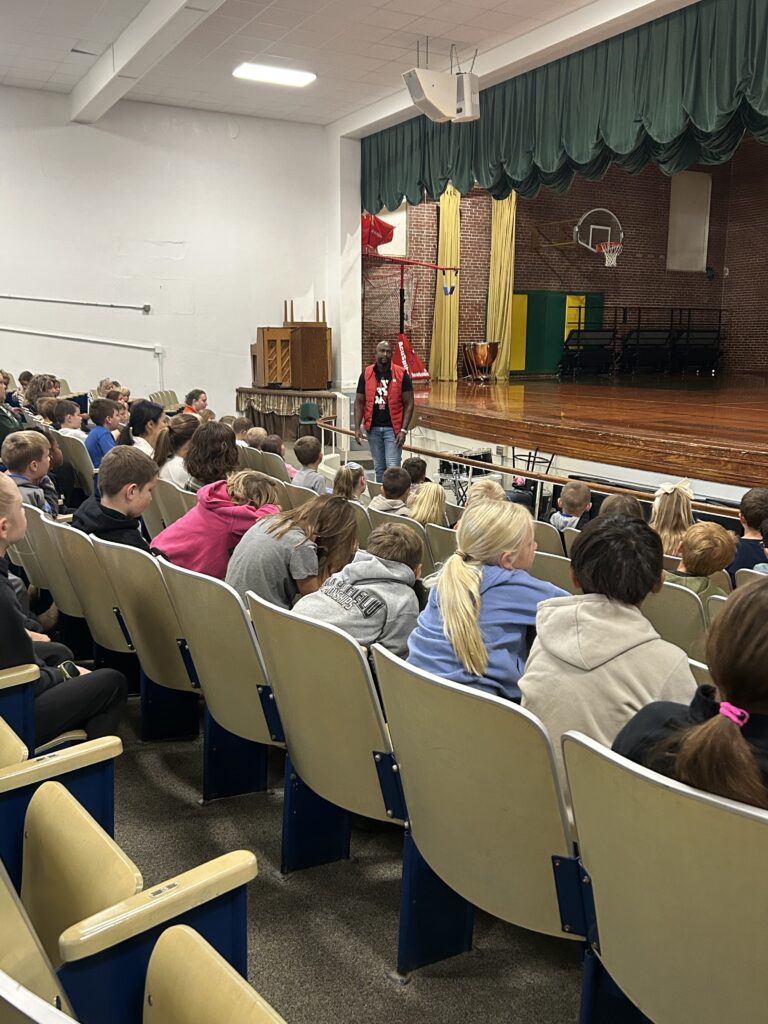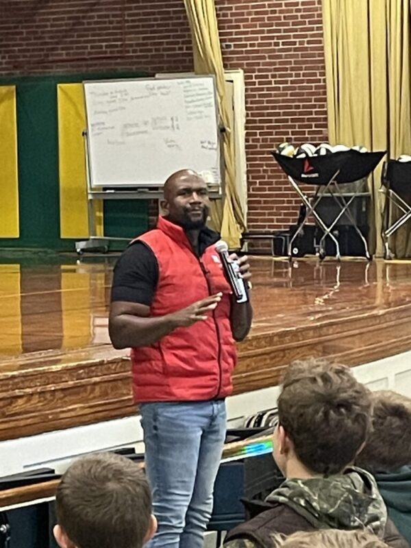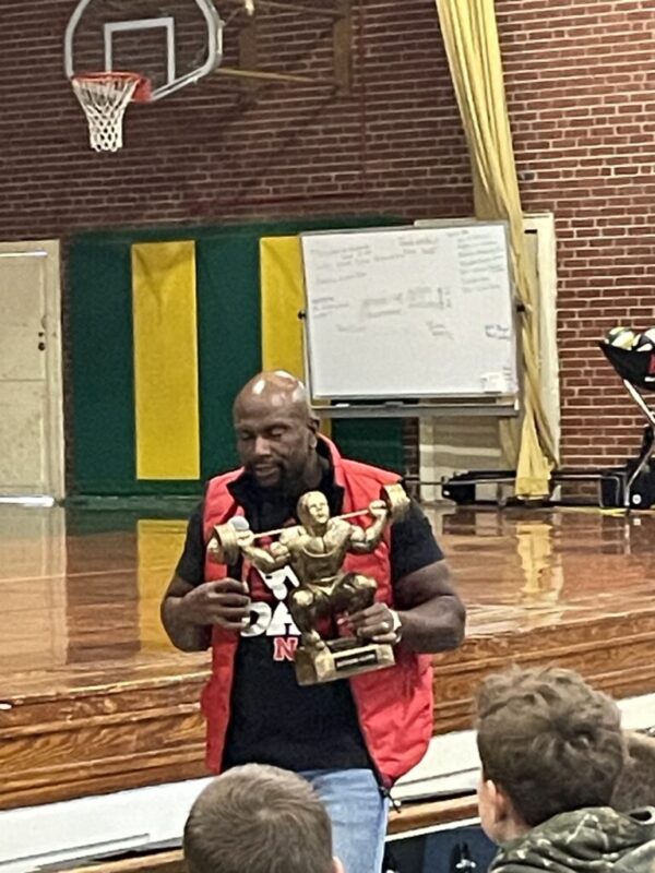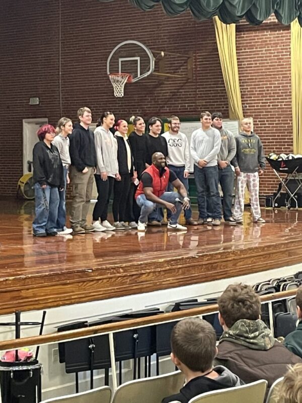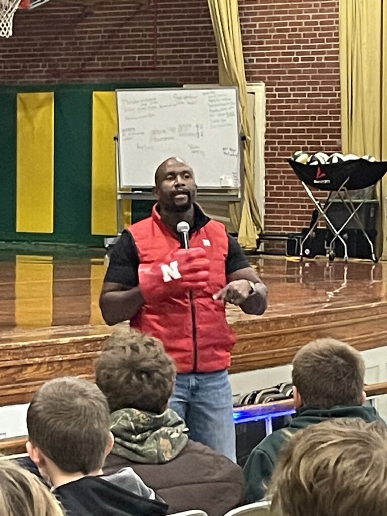 Demoine Adams, a former Nebraska Husker football player, also a motivational speaker, came to our school today to give us a pep talk. He spoke to us about putting in the work to get the outcome you want. He told us about his life and hardships to help us understand that people that you may not think are cool or people you don’t like still deserve respect because you never know what they are capable of. As a kid, he wasn’t the greatest in school; he stuttered and even had problems with bullies picking on him. That didn’t stop him, though; his teachers pushed him to be the best version of himself, and he put forth the effort, and then he became successful. He pushed us to want to be the same, to want to be leaders and be the best versions of ourselves. He may not have been the smartest, but that is ok, you don’t have to be the smartest or the fastest or the best athlete, it is about the effort you put into your goal.